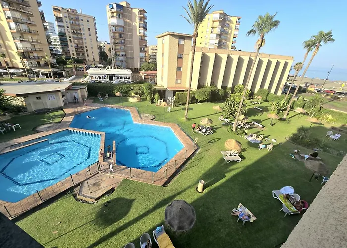 Con una piscina, el Apartamento Playamar con vistas al mar y piscina a 50 metros del Paseo Marítimo Torremolinos está situado a poco más de 5 minutos a pie de los Álamos.
